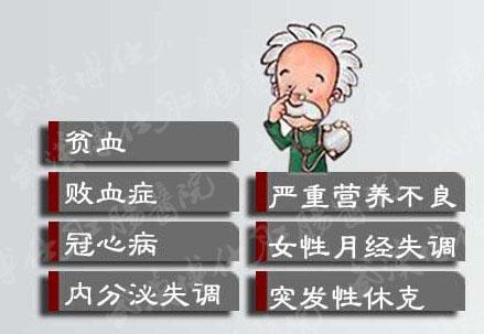 3、贫血:贫血较重时则会出现面色苍白、倦怠乏力、食欲不振、心悸、心率加快和体力活动后气促、浮肿等,一些患者甚至可出现神经系统症状如易激动、兴奋、烦躁等。