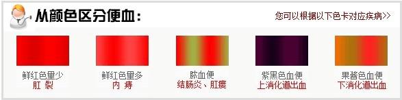 (1)痔疮便血:便血一般发生在排便过程中或便后,呈滴血或喷射状,血色鲜红,血与粪便不混合。