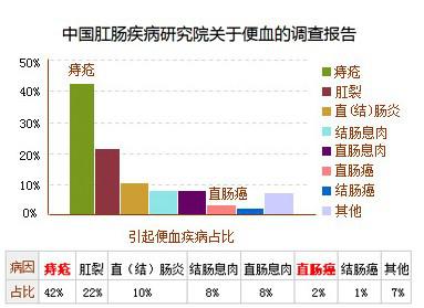 导致便血的肛肠疾病比较多样化,肠癌也会出现便血的症状。临床80%的肠癌患者就是因为轻视检查,确诊时已经是晚期,错过肠癌的治疗时机,让悲剧上 演。很多曾经闪耀一时的明星和名人,最终都被肠癌夺去了生命,过早的陨落,留给世人无尽的遗憾。因此,大便带血一定要引起重视,尽早去正规医院检查,排除 病因,早治疗,早放心。