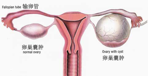 ⒌畸胎瘤:这是一种很特别的囊肿,可能是在胚胎时期的细胞分化上出了问题,经过很久的时间才表现出来。它会在卵巢内生成毛发、牙齿还有一些油脂类的聚集。由于畸胎瘤本身不会自行消失,而且还有可能不断的成长,另有15%机率会造成卵巢扭转,所以好及早切除。