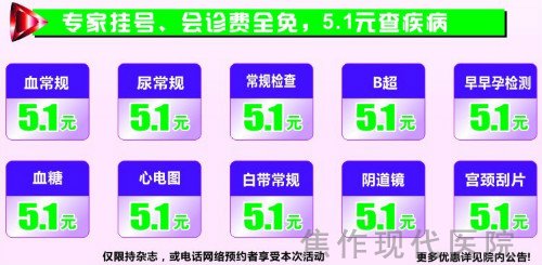 5.1元做检查。活动期间由于我院治疗患者较多,敬请
