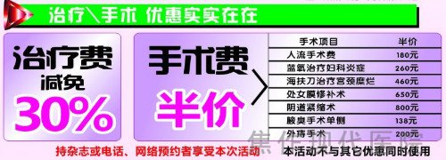 治疗费减免30% ,手术费半价,优惠多多喔~